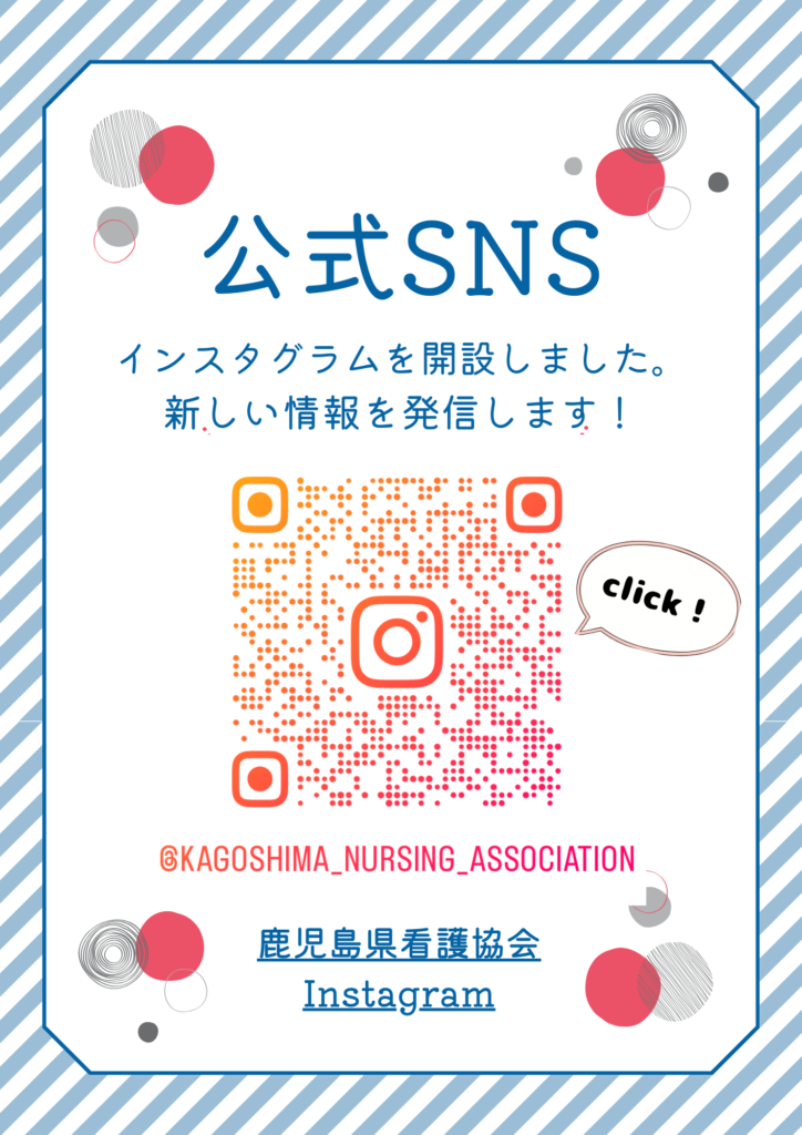 ホームお知らせ鹿児島県看護協会の「インスタグラム」を開設いたしました! 鹿児島県看護協会の「インスタグラム」を開設いたしました! 鹿児島県看護協会のインスタグラムを開設いたしました。 鹿児島で活躍する看護職の皆様に向けて研修など新しい情報を発信していきます。 是非フォローをお願いいたします! 一覧へ戻る 記事検索 検索 カテゴリー お知らせ教育・研修ナースセンター医療的ケア児等訪問看護居宅他団体からの案内理事会報告地区活動報告 アーカイブ 2026年1月 2025年12月 2025年11月 2025年10月 2025年9月 2025年8月 2025年7月 2025年6月 2025年5月 2025年4月 2025年3月 2025年2月 2025年1月 2024年12月 2024年11月 2024年10月 2024年9月 2024年8月 2024年7月 2024年6月 2024年5月 2024年4月
